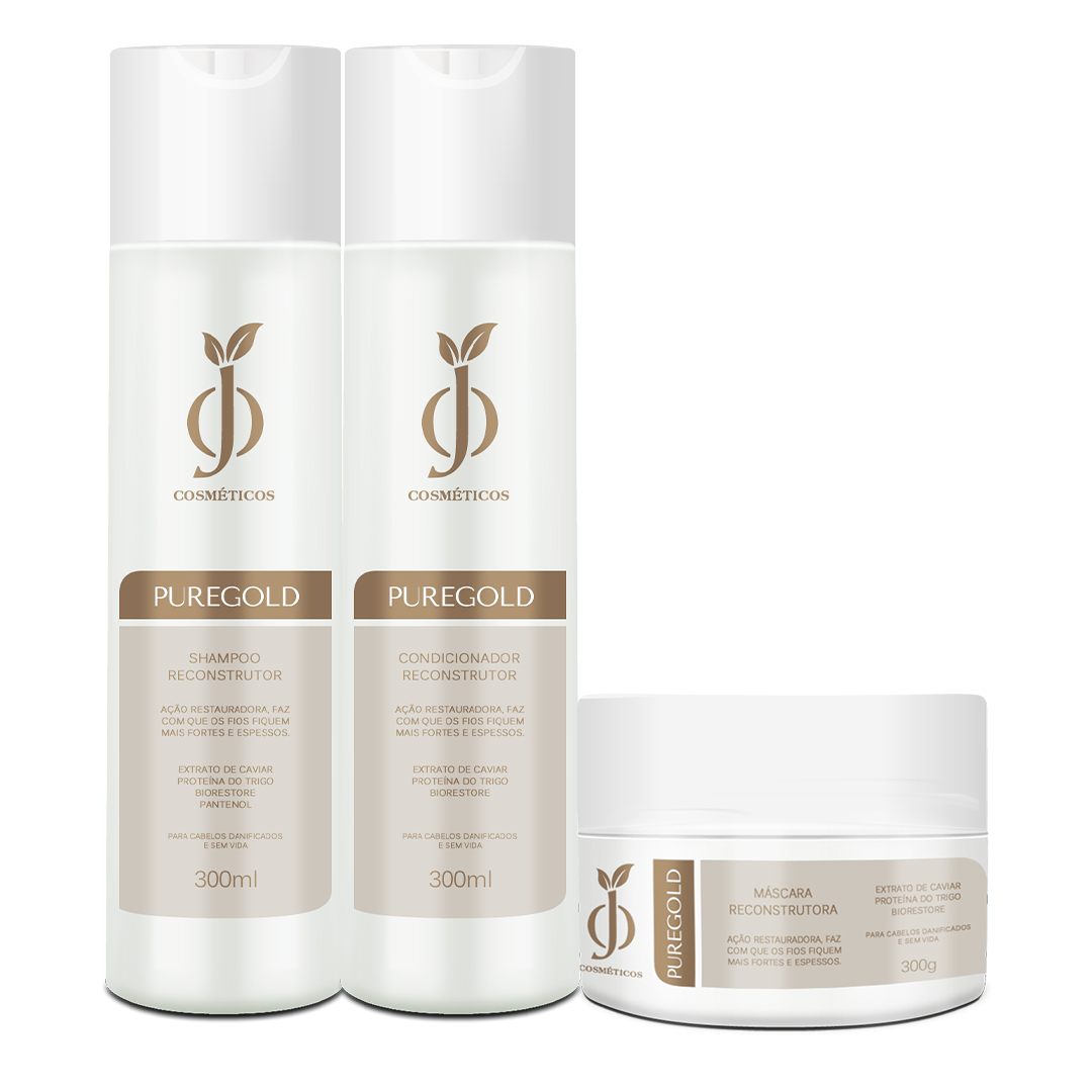 O shampoo PureGold combina extrato de caviar, proteína do trigo, biorestore e pantenol para fortalecer os cabelos, deixá-los mais resistentes e promover um brilho incrível. O condicionador PureGold também é enriquecido com extrato de caviar, proteína do trigo e biorestore, proporcionando hidratação intensa, nutrição e proteção aos fios. A máscara capilar PureGold contém extrato de caviar, proteína do trigo e biorestore, que agem na reconstrução profunda dos cabelos, reparando danos e devolvendo a saúde e vitalidade perdidas.